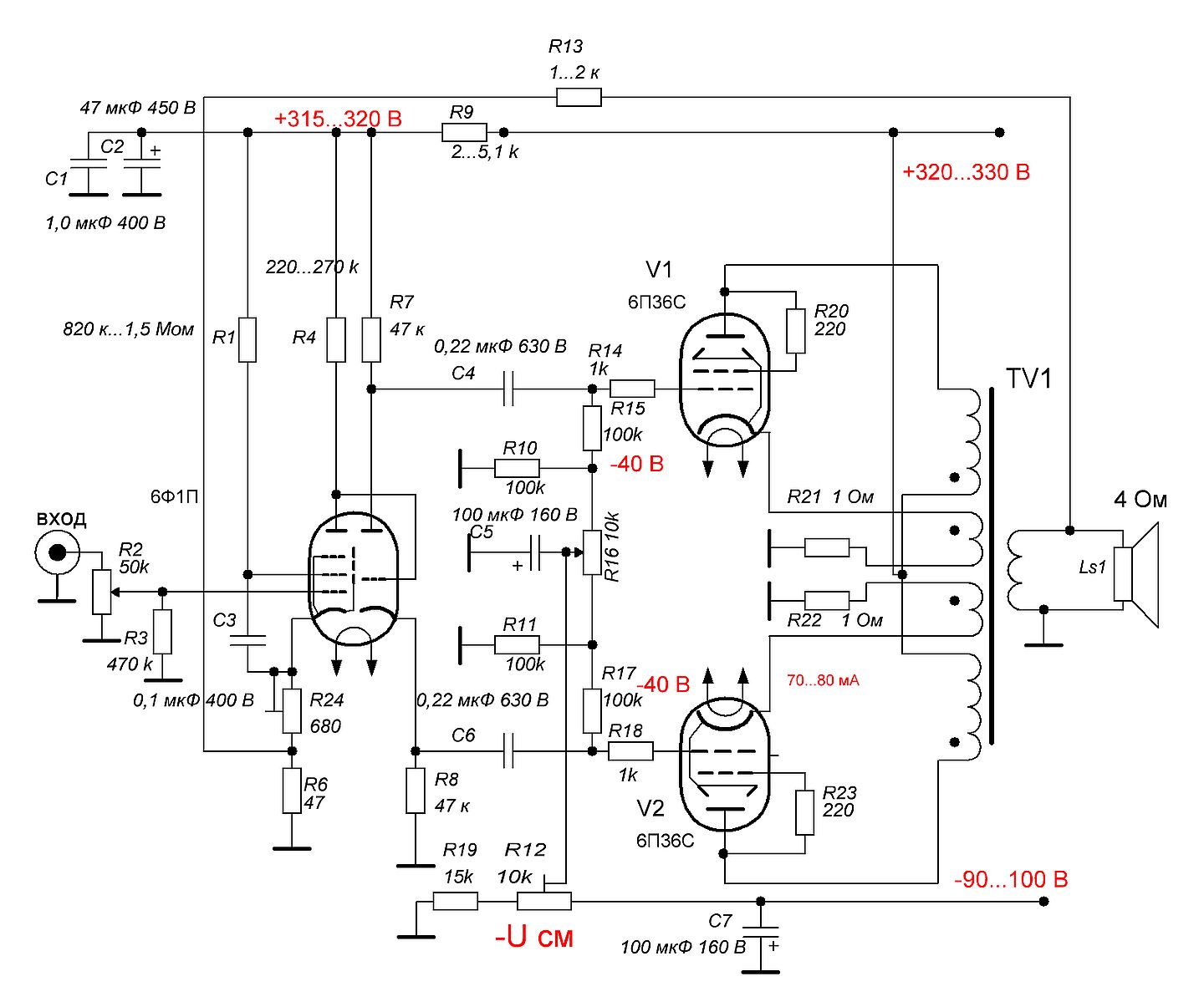 Напомните, какое у Вас Ri лампы 6П36С. В разных источниках - разное. +/- 50...100 Ом. То 600, то 750 Ом.