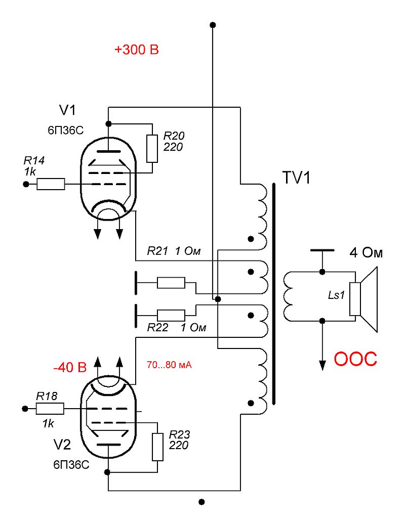 Минимальные искажения получились при сопротивлении нагрузки 4 Ома. Итого: Ra-a=Rн*К*К;